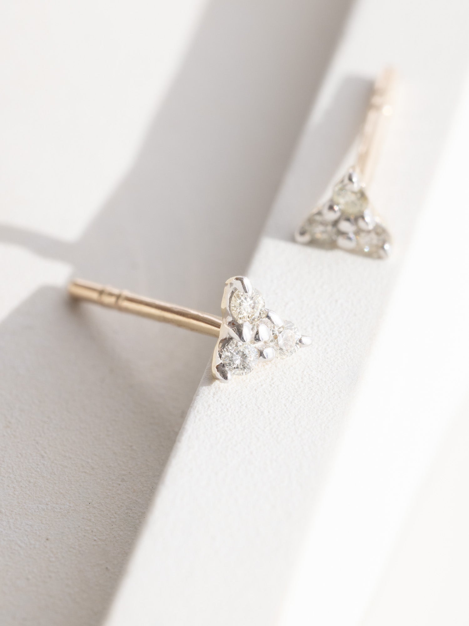 The Diamond Dancer Studs have a size of 3.2mm x 3.2mm. Each earring features 3 x 1.3mm brilliant-cut white diamonds of GH-P colour, making for a total of 6 diamonds when purchased as a pair.