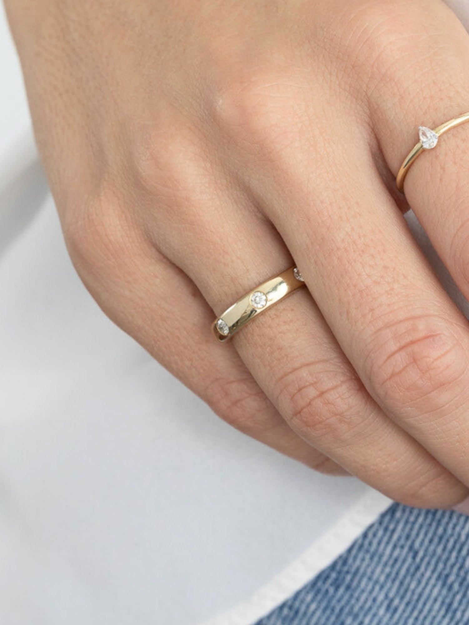 Indulge in understated luxury with the Esme Ring. Crafted from Solid 9K Gold and adorned with three natural diamonds, it's the epitome of elegance for everyday wear.
