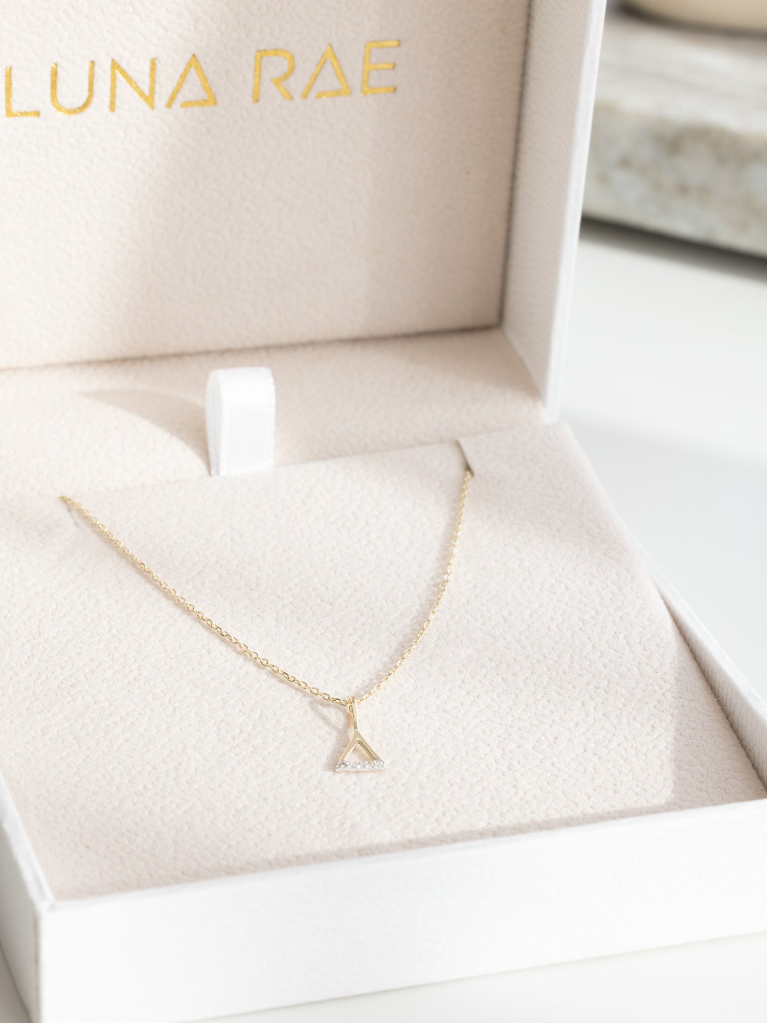 The necklace, meticulously crafted from solid gold, encapsulates this ardor with its unique flame-inspired triangle design, pointing upwards, further accentuated by a line of shimmering white diamonds. It serves as a constant reminder of the fire bearer's passion and spirit.
