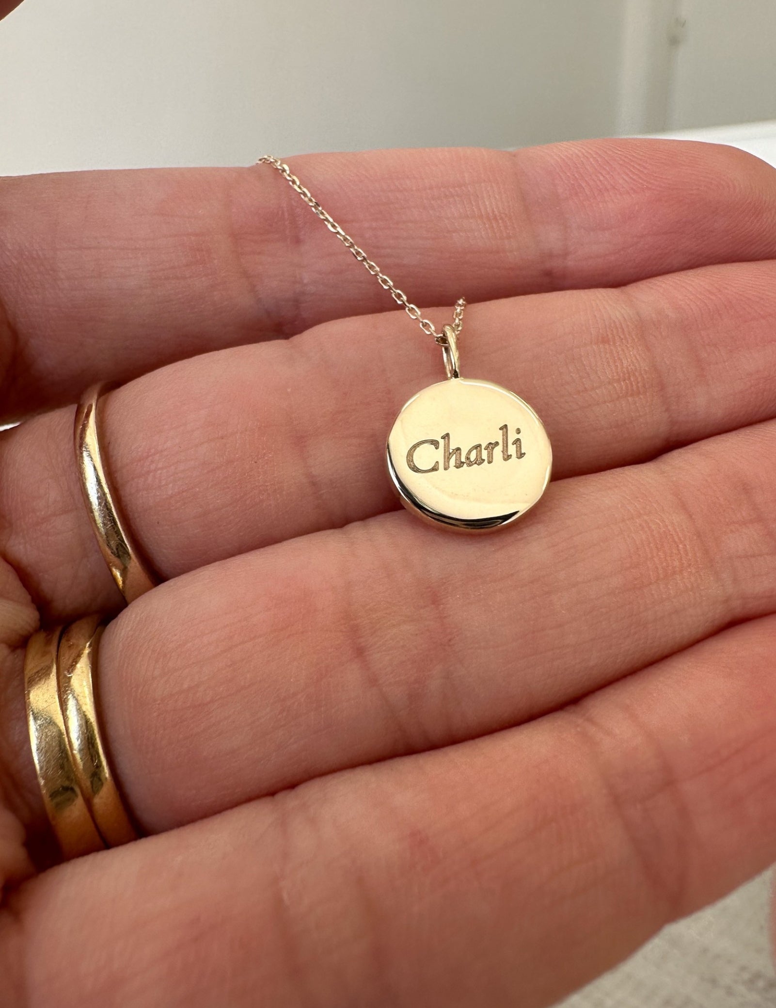 Hold onto what matters most with the Flat Disc Pendant. Crafted from solid 9K gold with a sleek, high-polish finish, this timeless piece comes in three sizes, ready to be engraved with a fingerprint, paw print, artwork, or a treasured memory—creating a keepsake that’s uniquely yours.