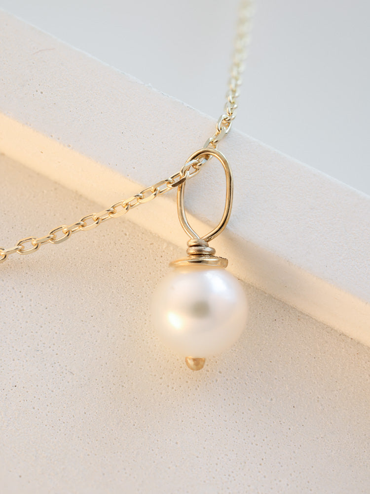 The Moonglade charm has a weight of approximately 0.19 grams, with dimensions of 4.7mm x 10.7mm. The necklace features a quality freshwater pearl. When paired with a chain, the necklace is available in lengths of 45cm (40cm with a 5cm extension) or 50cm (45cm with a 5cm extension).