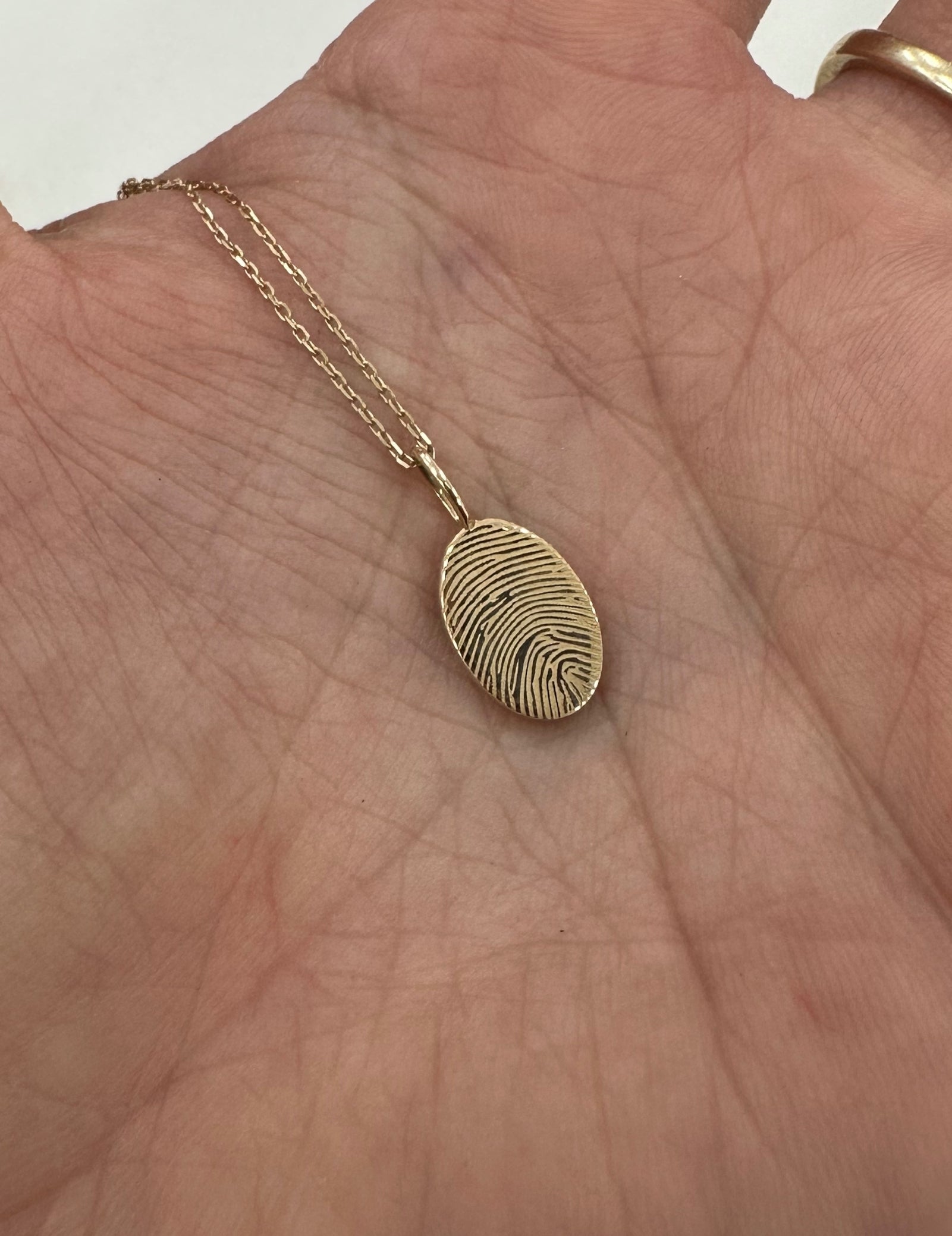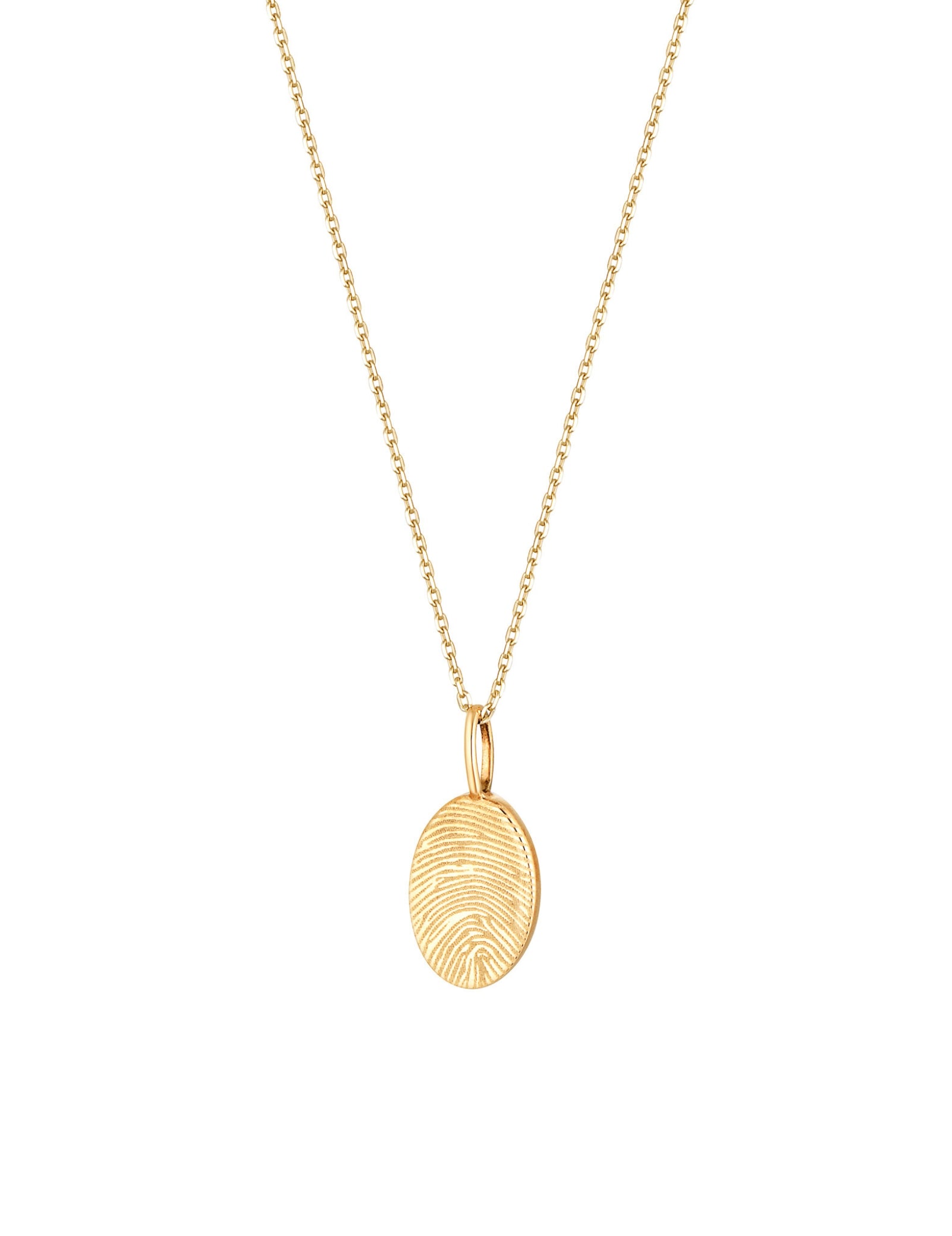 Carry the touch of your loved ones wherever you go with the Oval Pendant, crafted from solid 9K gold. Designed for engraving fingerprints, paw prints, artwork, or a memorial touch, it transforms into a deeply personal keepsake.