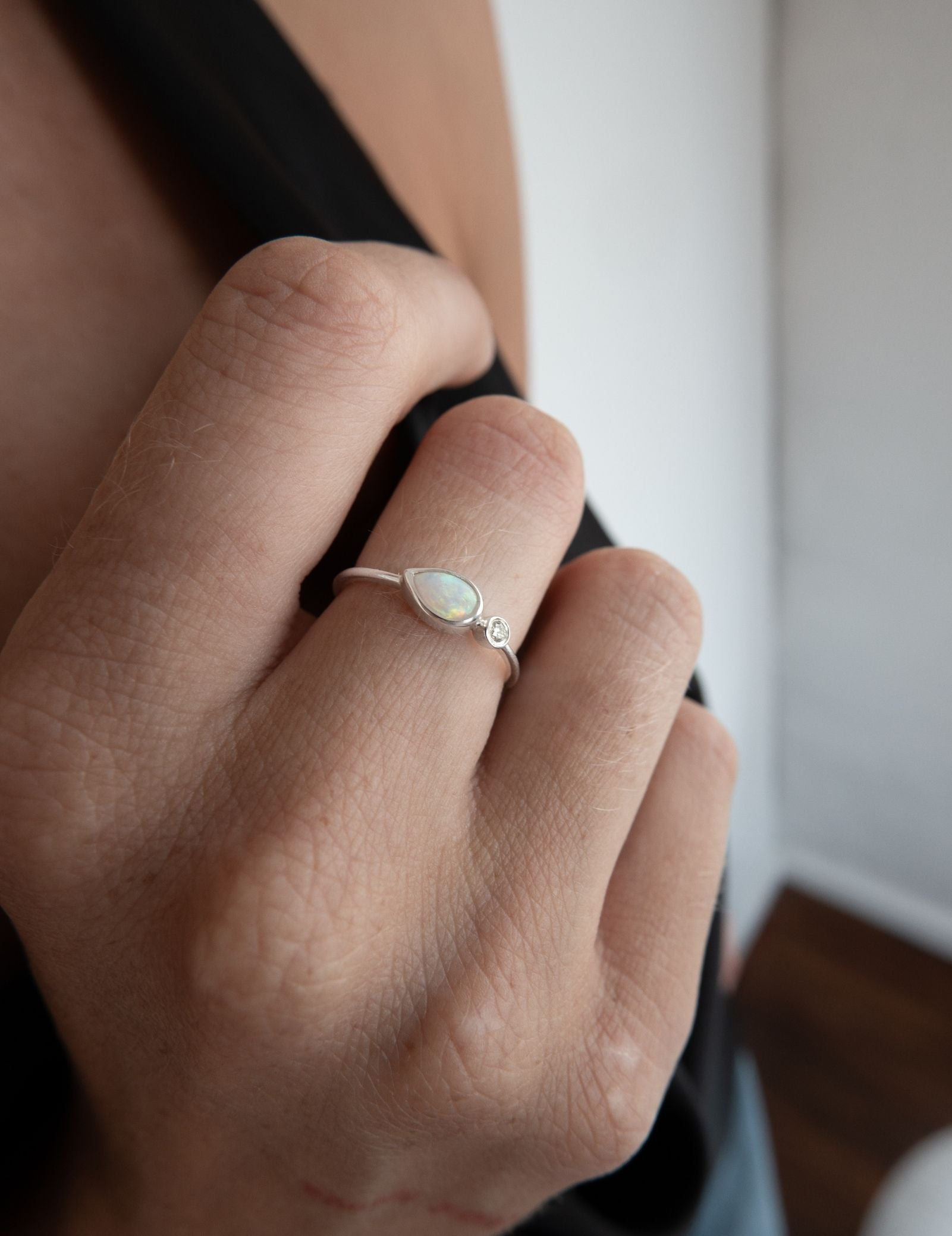 This one is so special to us, its a design that we simply love, the Australian opal is the hero of course, but she lights up even more next to the diamond
