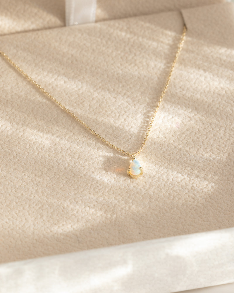 • Teardrop Australian Opal: The necklace features a teardrop Australian Opal measuring 5mm high & 3.5mm wide. Each opal is unique, ensuring that each necklace is a one-of-a-kind piece.