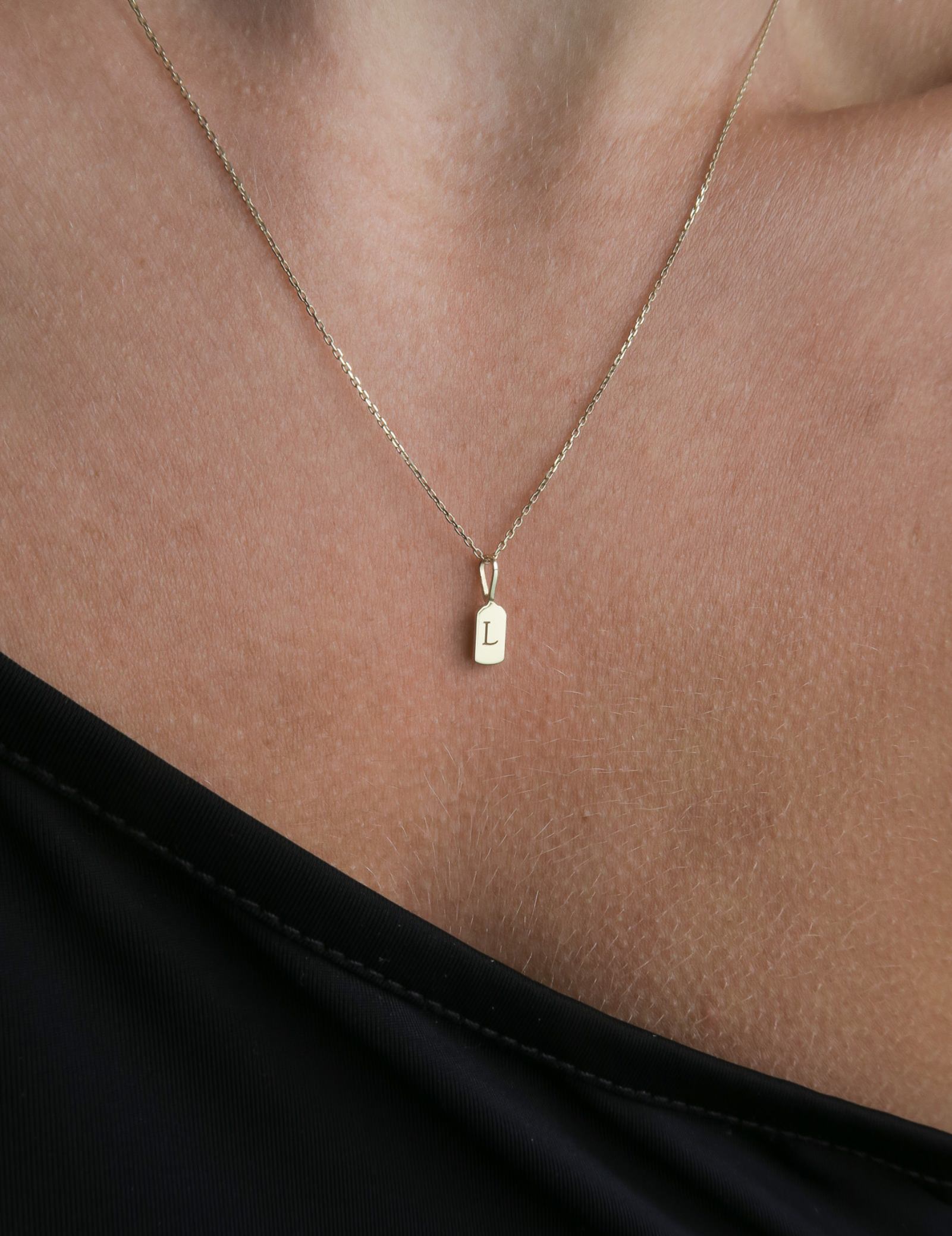 The Luna Letter L charm measures 11mm x 3.6mm, ensuring a subtle yet distinct presence on any outfit.