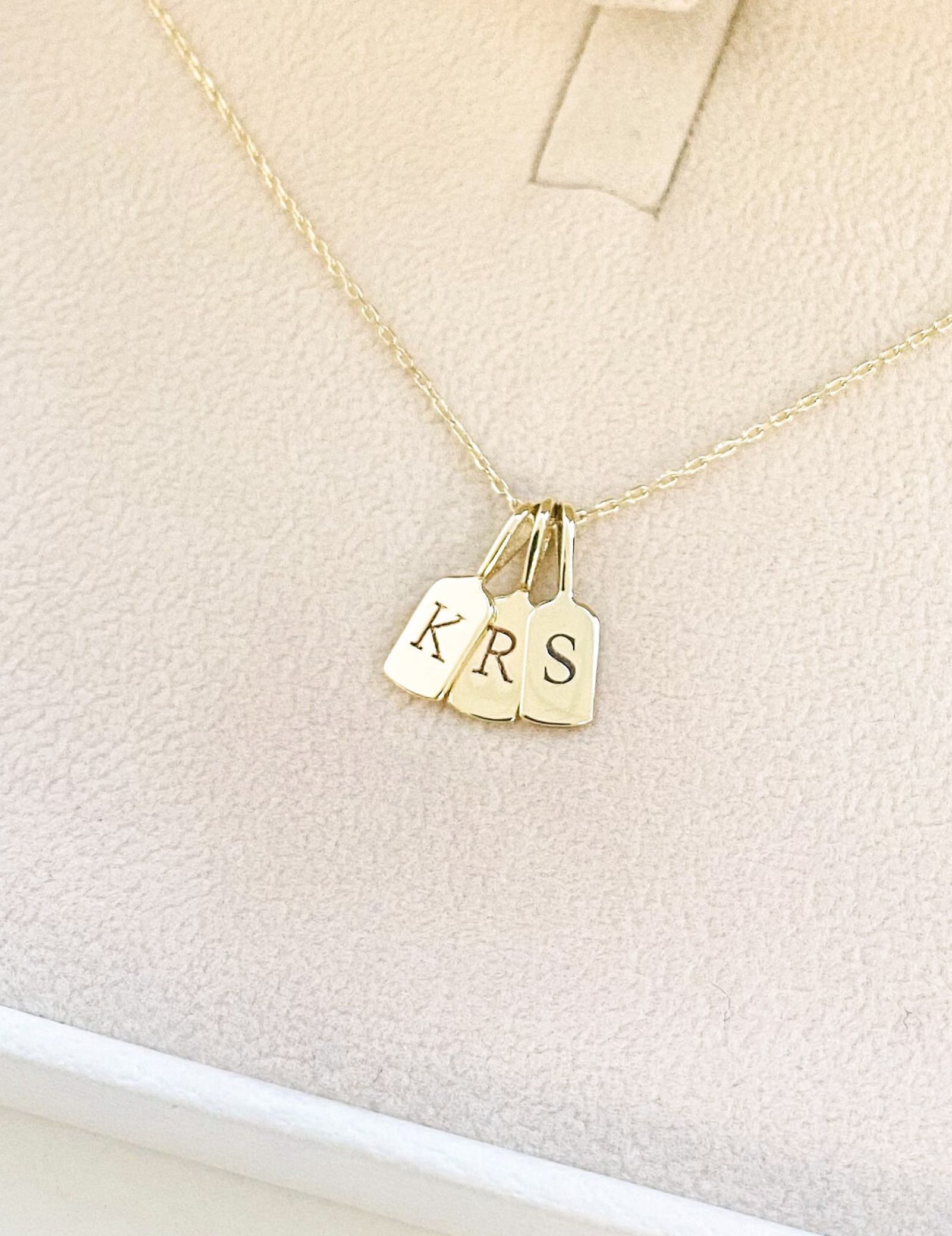 The delicate typewriter-style font allows it to hang as a single charm or be layered with other Luna Letters, creating a personalised piece. Available as a standalone charm or with a solid gold chain of varying lengths, it's a lightweight yet distinctive accessory.