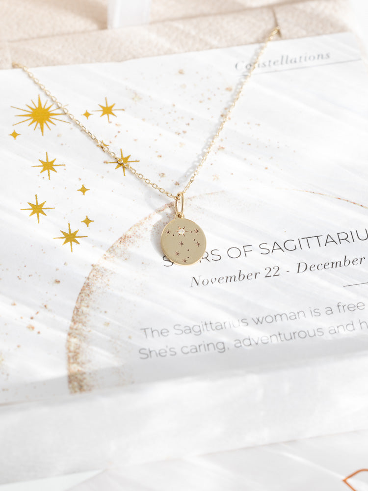 Journey through the stars with the Stars of Sagittarius Necklace. Inspired by the Sagittarius constellation, this necklace is a unique reflection of those born under the zodiac sign from November 22 to December 21.